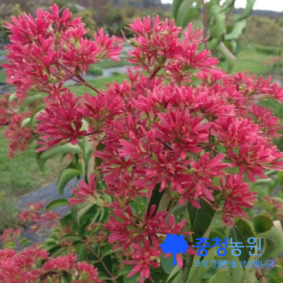 | 상품설명 | 도심의 기후환경에도 잘 적응하고 내한성, 내건성, 내공해성, 내염성 등이 강하다. 특징 : 8~9월 약 한 달간 쟈스민 향기가 나는 하얀 꽃으로 뒤덮히는 희귀한 밀원수이며, 짙은 핑크색의 꽃받침이 마치 만개한 꽃처럼 보이는 특이수종이다. 활용 : 정원수, 공원수로 이용가치가 높다. |