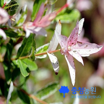 | 상품설명 | 흰색, 분홍, 초록의 색상조화로 봄, 여름, 가을동안에 특유의 느낌을 주는 품종이다. 특징 : 계절마다 변하는 잎이 관상가치가 높아 인기가 꾸준하게 증가하고 있는 품종이다. 활용 : 정원수, 공원수, 기념식수로 활용된다. |
