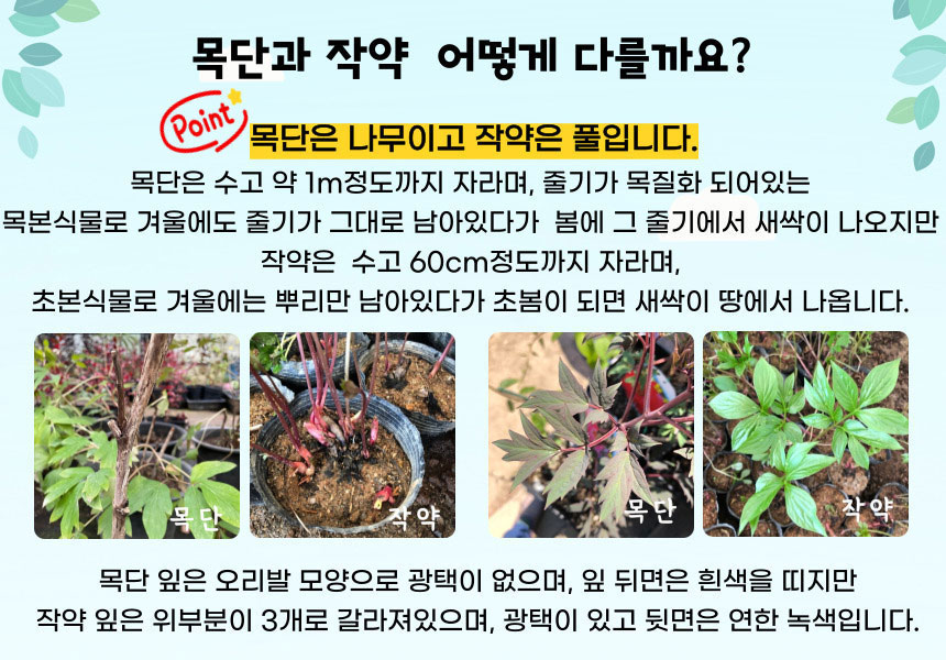 | 상품설명 | 특징 : 수입개량목단으로 겹꽃에 꽃송이가 풍성하며 빛깔이 곱고 화려하다. 활용 : 관상수, 조경수, 뿌리 껍질은 두통, 요통, 지혈 등에 쓰인다. |